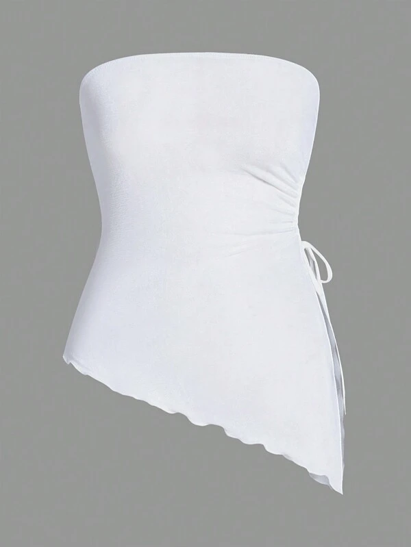 SHEIN Qutie Drawstring Side Asymmetrical Hem Tube Top