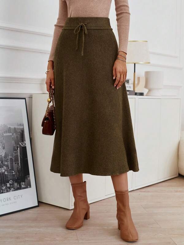 Drawstring Waist Knit Skirt