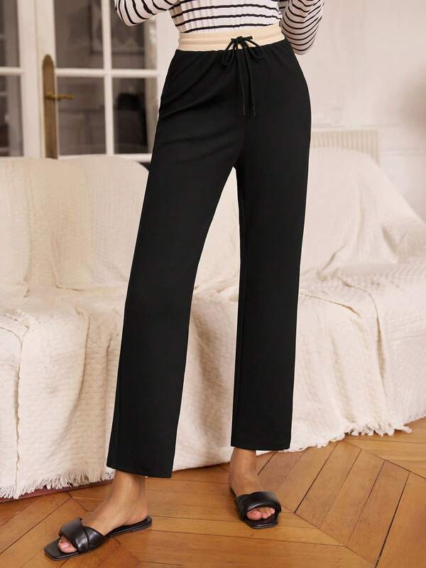 SHEIN Frenchy Drawstring Waist Straight Leg Pants