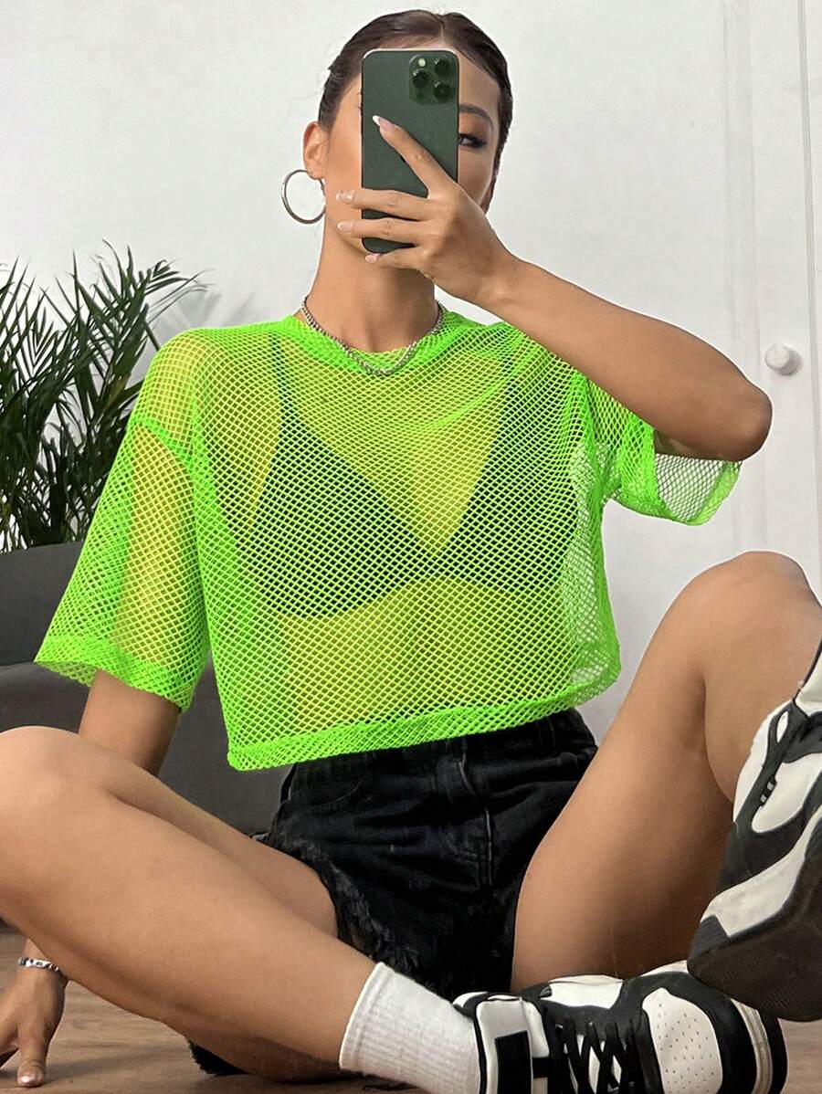 SHEIN EZwear Drop Shoulder Crop Mesh Top Without Bra