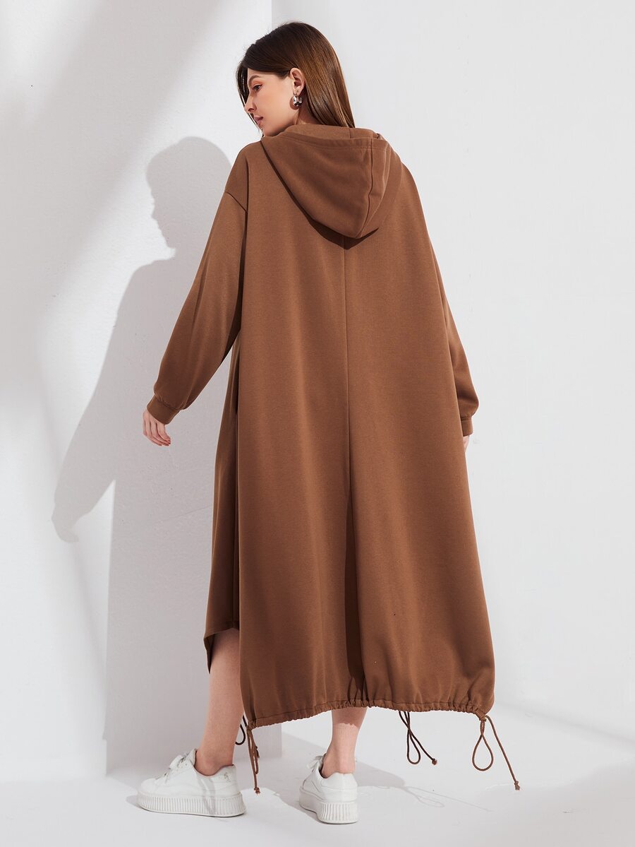 SHEIN Mulvari Drop Shoulder Drawstring Hem Hooded Sweatshirt Dress
