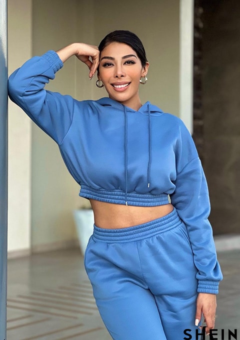 SHEIN Essnce Drop Shoulder Elastic Hem Drawstring Hoodie & Sweatpants