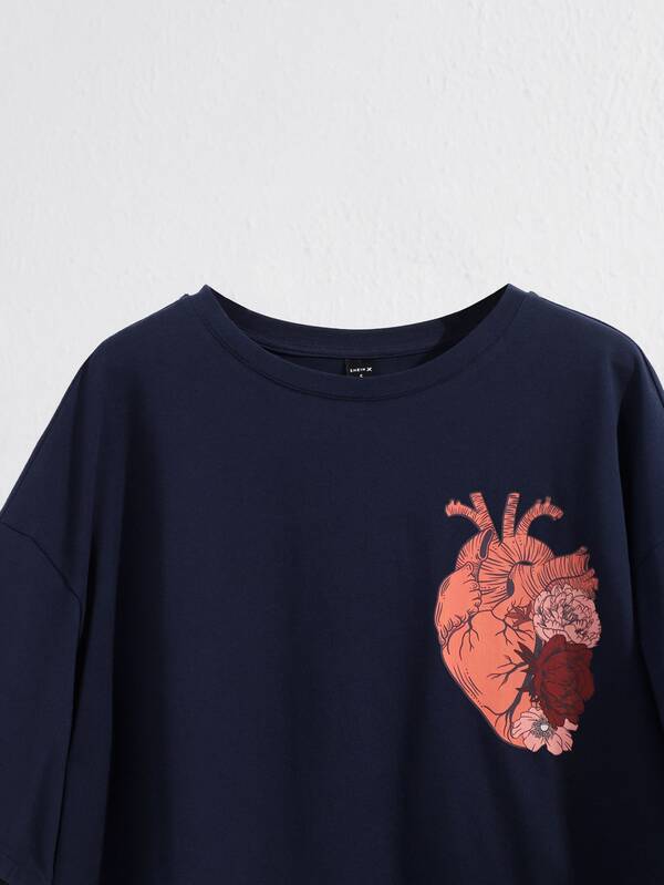 L'Amour Morbide Drop Shoulder Floral & Heart Print Tee