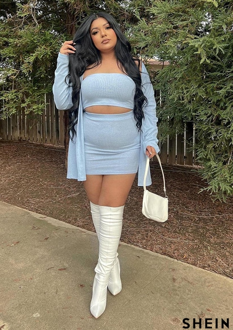SHEIN SXY Drop Shoulder Open Front Coat & Tube Top & Skirt