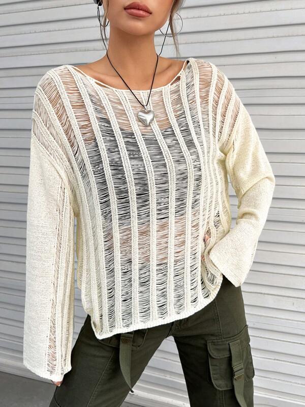 SHEIN Coolane Drop Shoulder Open Knit Sweater Without Cami Top