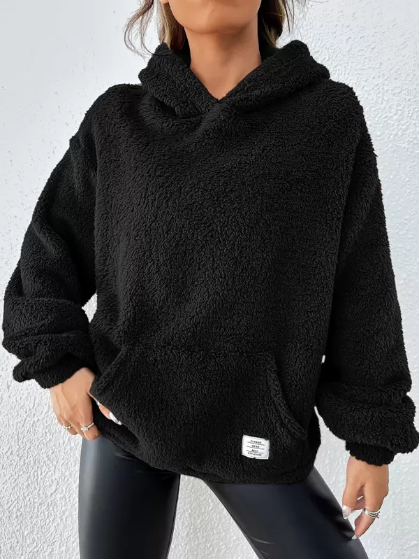 SHEIN EZwear Drop Shoulder Patch Detail Teddy Hoodie