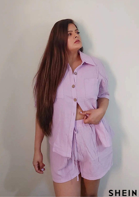SHEIN LUNE Drop Shoulder Pocket Patched Shirt & Shorts