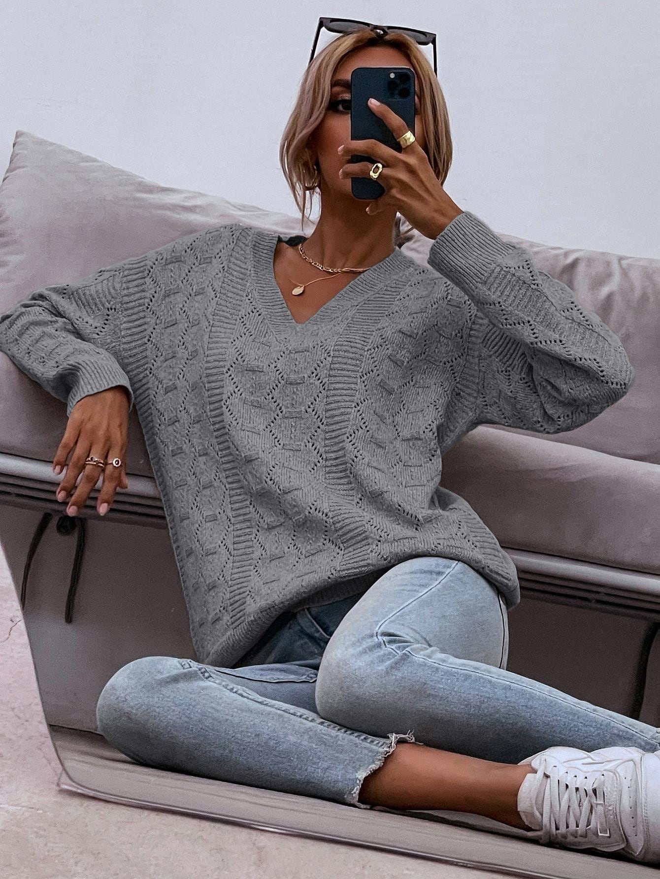 SHEIN LUNE Drop Shoulder Pointelle Knit Sweater