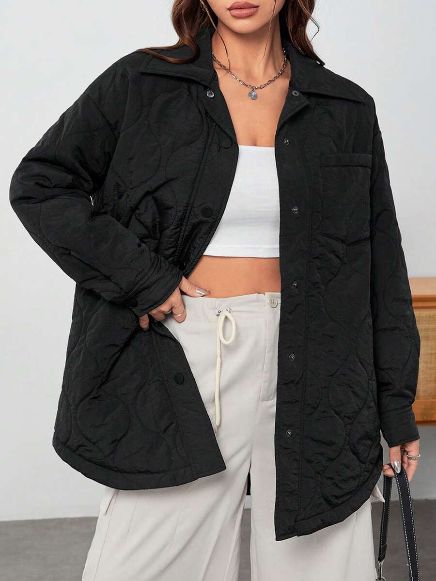 SHEIN EZwear Drop Shoulder Quilted Coat