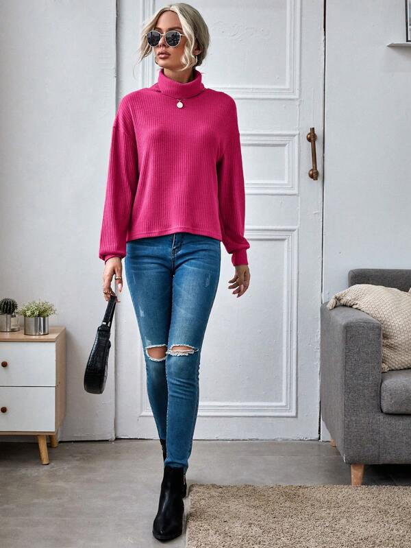 SHEIN LUNE Drop Shoulder Ribbed Knit Tee