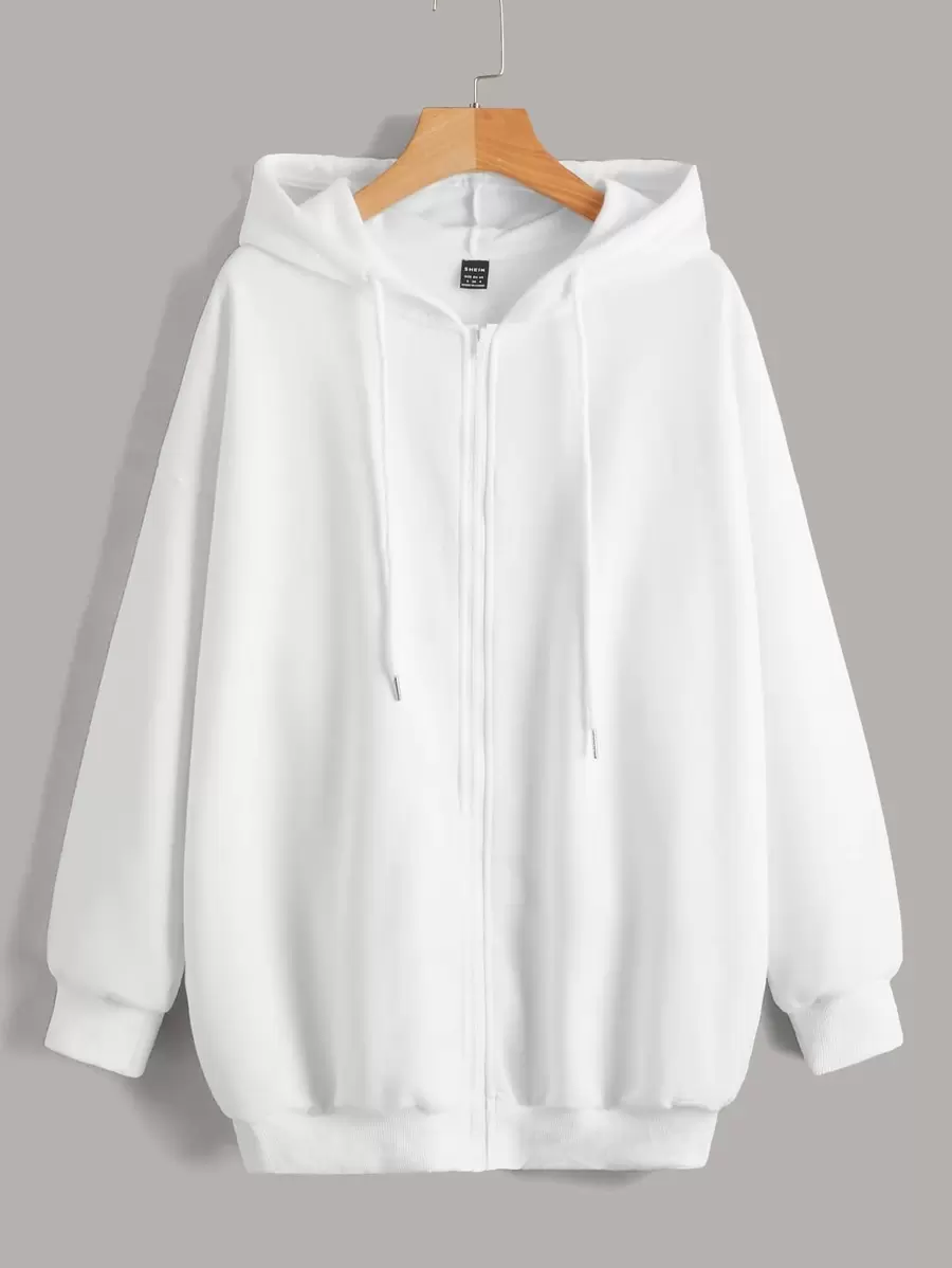 SHEIN EZwear Drop Shoulder Solid Zip Up Hoodie