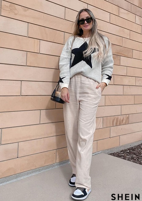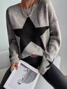 SHEIN Essnce Drop Shoulder Star Pattern Sweater