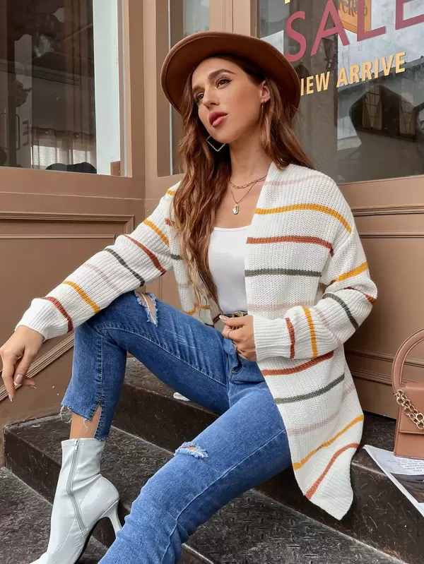 SHEIN LUNE Drop Shoulder Striped Cardigan