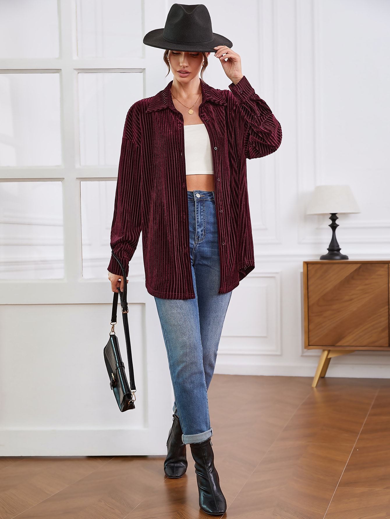 SHEIN LUNE Drop Shoulder Velvet Shirt