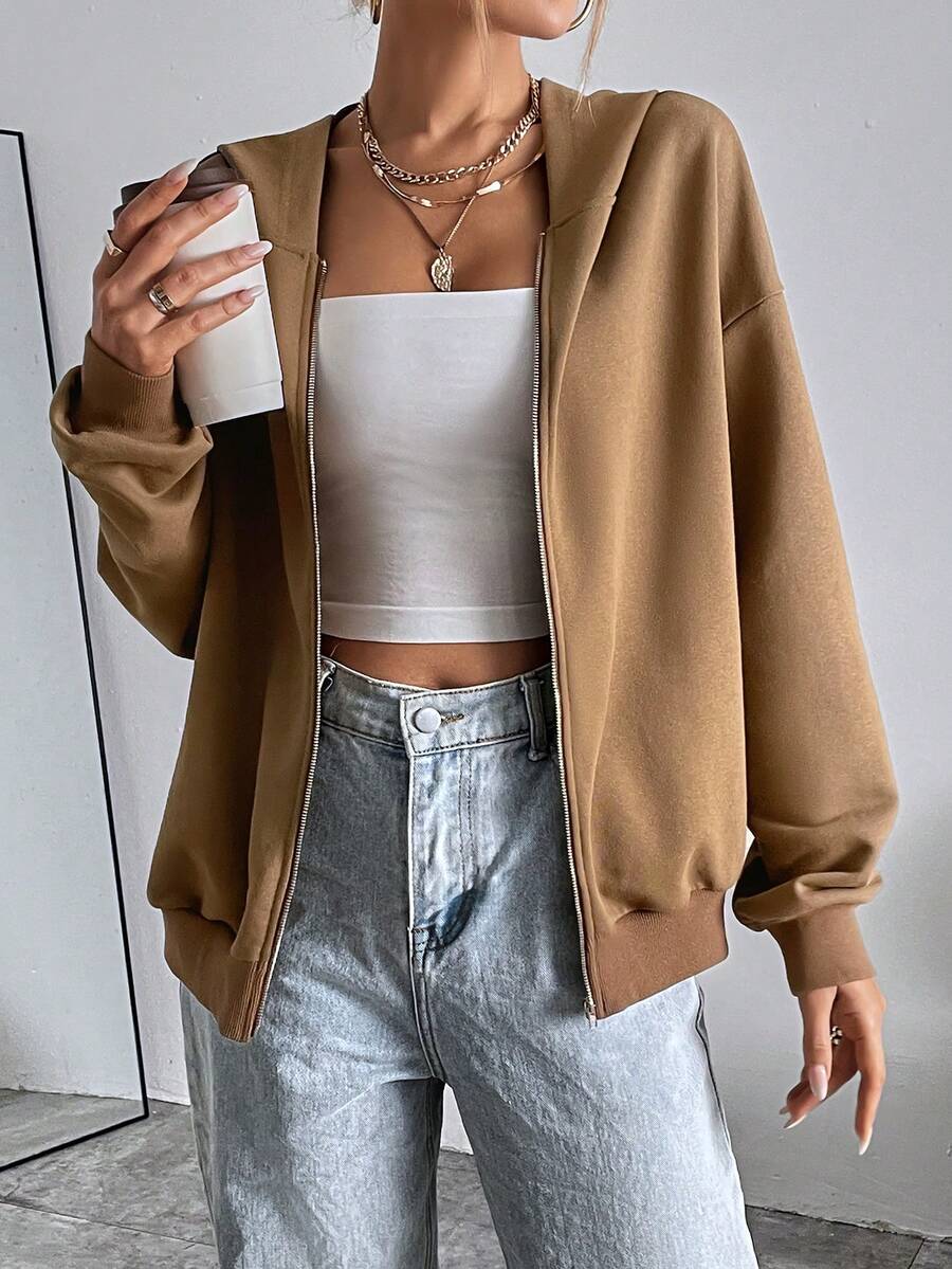 SHEIN Essnce Drop Shoulder Zip Up Hoodie