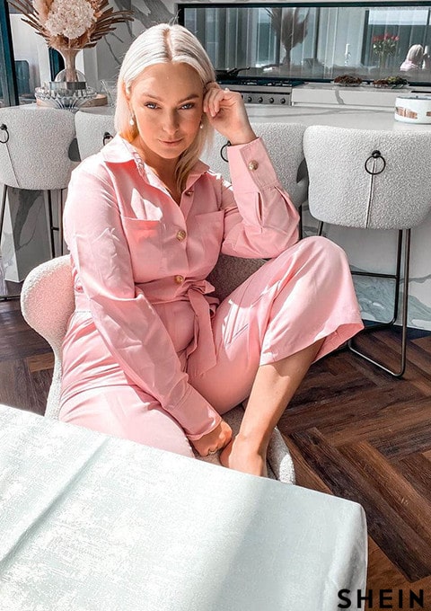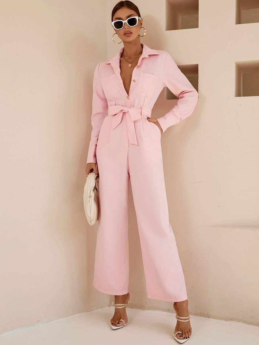 SHEIN BIZwear Dual Pocket Belted Jumpsuit Workwear