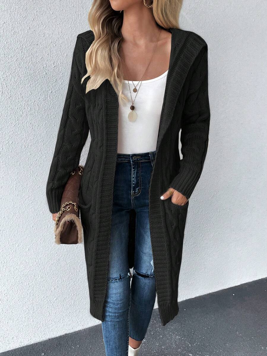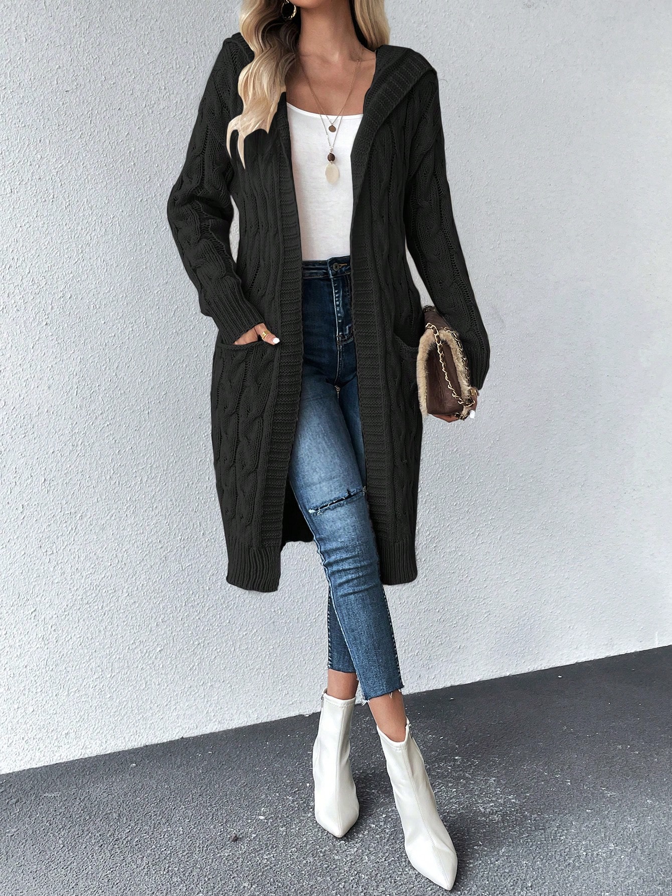 SHEIN Essnce Dual Pocket Drop Shoulder Hooded Duster Cardigan