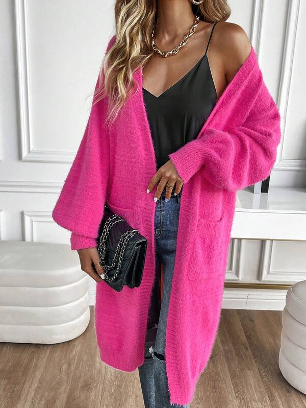 Dual Pocket Drop Shoulder Open Front Cardigan