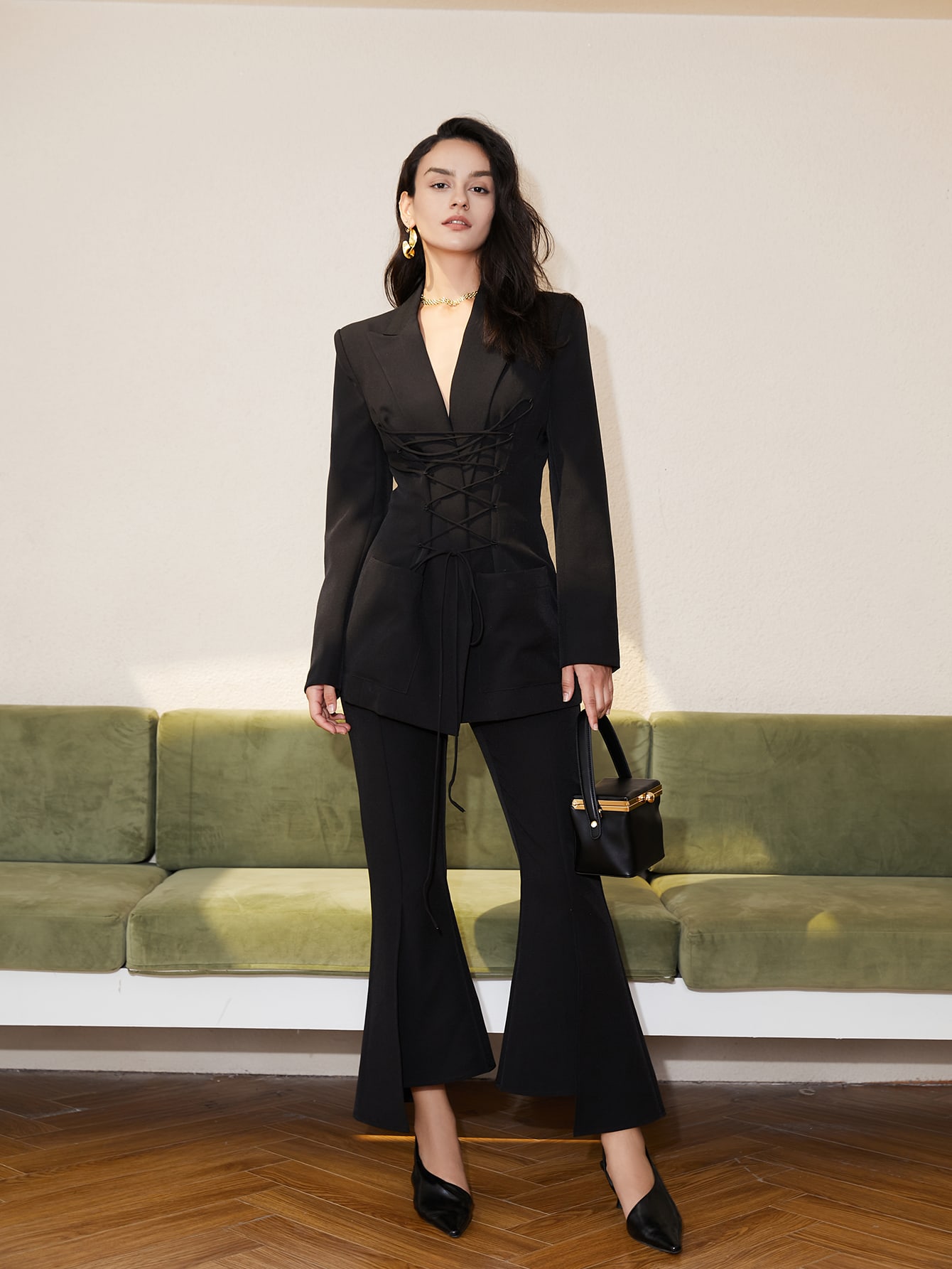 Dual Pocket Lace Up Front Blazer