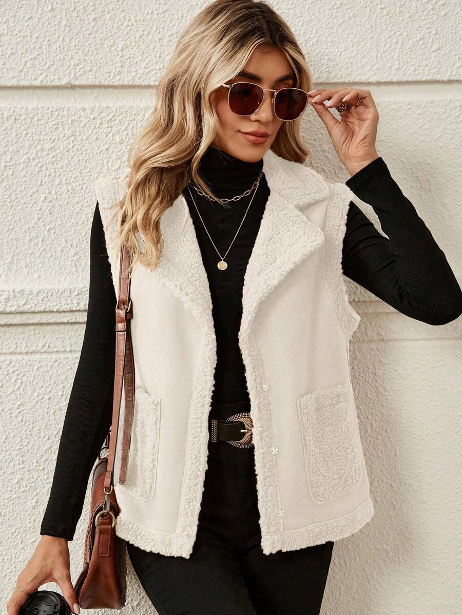 SHEIN LUNE Dual Pocket Teddy Lined Vest Jacket