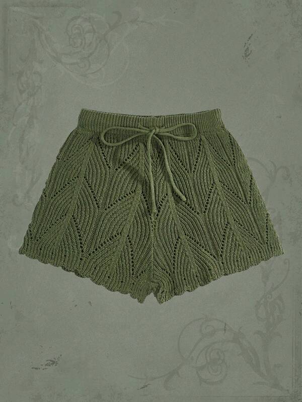 ROMWE Fairycore Elastic Knitted Sweater Shorts With Forest Style And Lace Trim, Plus Size