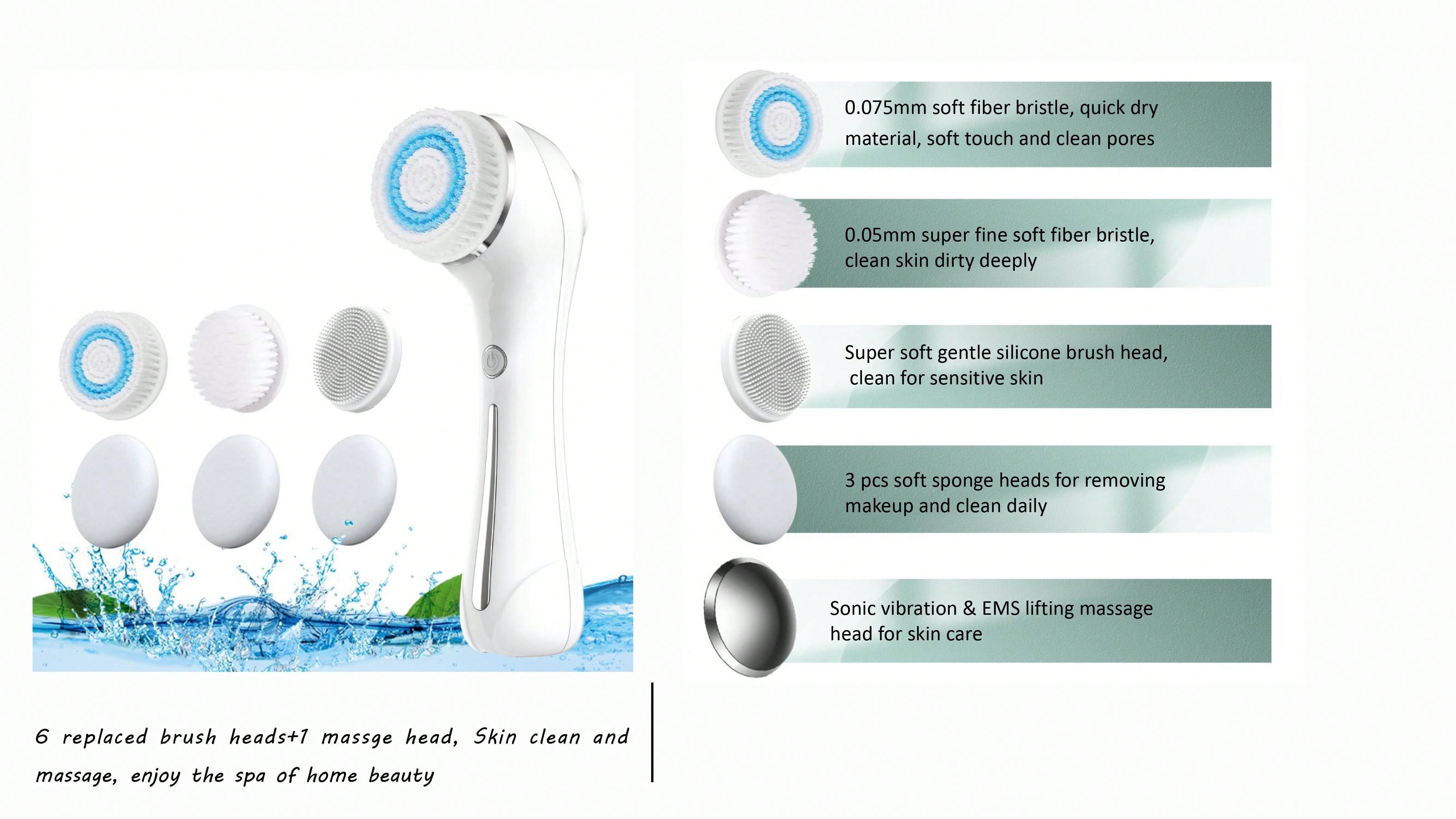 3-In-1 Silicone Cleansing Brush, 3 Brush Heads, Rechargeable Multi-Functional Cleaning And Massaging Facial Cleansing Brush For Home Use