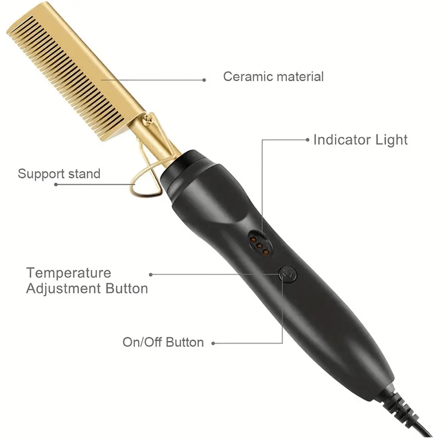 Electric Heating Copper Comb For Wet & Dry Hair, 2-In-1 Multifunctional Hair Straightener & Curler, Home Hair Styling Tool