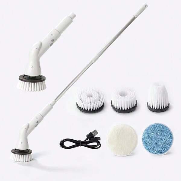 Electric Spin Scrubber, Cordless Cleaning Brush Shower Cleaner Brush With 5 Replacement Brush Heads Spin Scrubber Tile Floor Cleaning Tool For Bathroom Kitchen Car