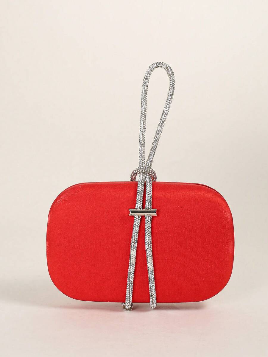 Elegant Shinny Red Women'S Glitter Banquet Bag, Classic Sparkling Rhinestone Rope Decor Satchel Evening Bag, Luxury Clutch Wallet