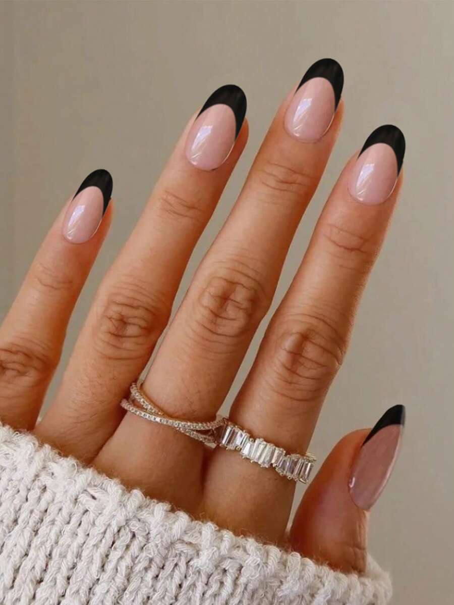 Elevate Your Style with 24pcs Black French Style Fake Nail & 1sheet Tape & 1pc Nail File