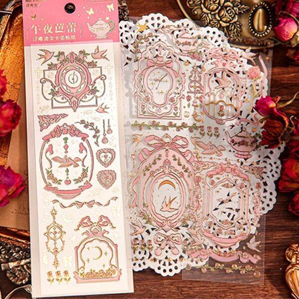 Embossed Foil Sticker, Moonlight Series, Creative And High Value Gukka Notebook Decoration Sticker Scrapbook Material Art Collage Sticker 1 Card With 3 Pieces