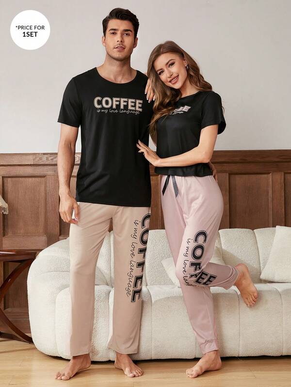 English Print Men's Short Sleeve And Long Pants Set