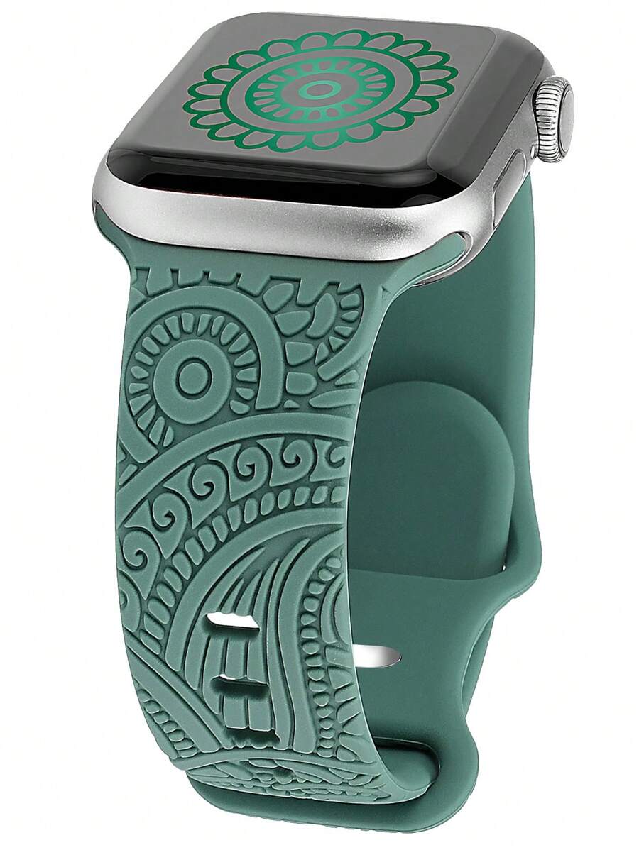 Engraved Band Compatible with Apple Watch Band 38mm 40mm 41mm 42mm 44mm 45mm 49mm for Women men, Western Lace Silicone Fancy Sport Flower Straps Compatible with Series 9/8/7/6/5/4/3/2/1/SE/UItra