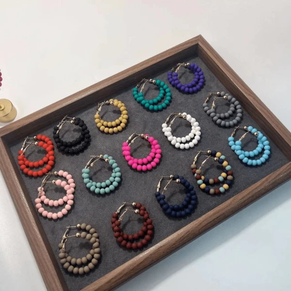 Europe And America Style 6mm Beaded Soft Pottery Earrings For Women