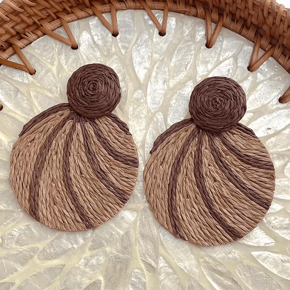 European & American Exaggerated Design Colored Raffia & Woven Metallic Thread Earrings With High-end Style And Versatile Characteristic