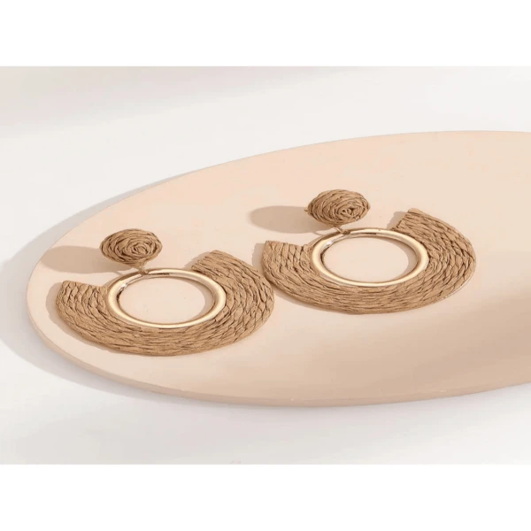 European And American New Fashion Handmade Raffia Grass Earrings, Exaggerated Elegant Round Ear Jewelry
