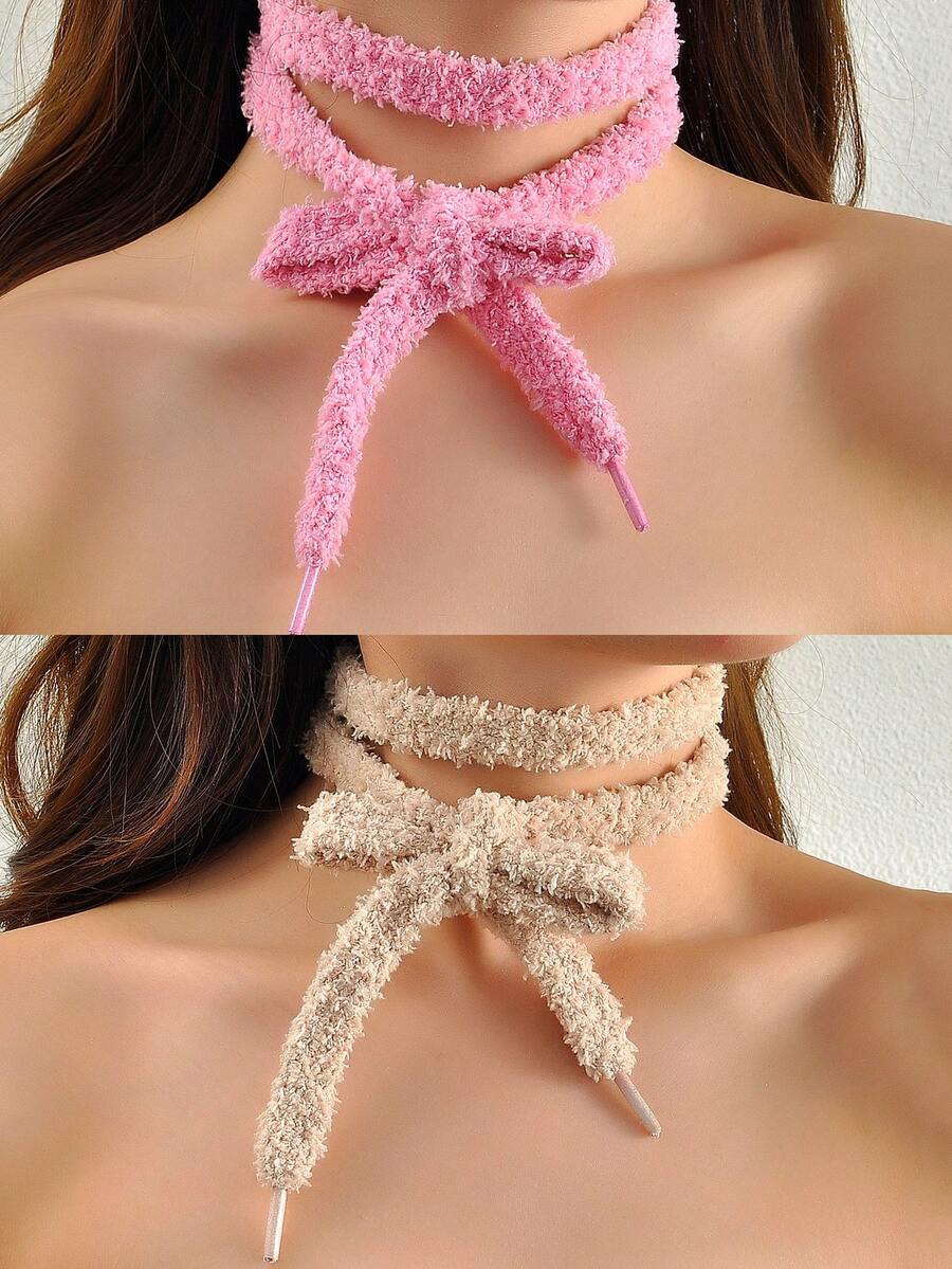 European And American Style, Fashionable And Versatile Necklace With A Plush Bow Decoration, Elegant Women's Necklace Suitable For Daily Wear, Dates, Holidays, Parties And Festivals, The Perfect Gift For Jewelry Lovers