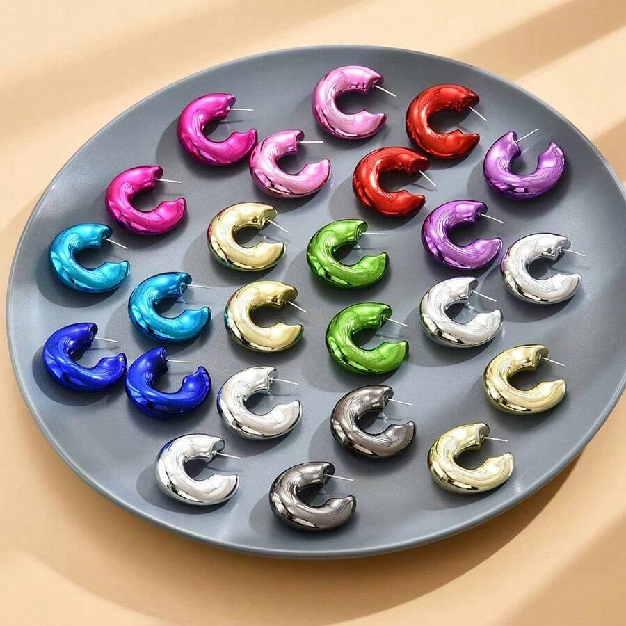 European And American Style Ins Fashion Simple And Versatile C-Shaped Large Hoop Earrings With Irregular Polka Dots, Women'S Exquisite Personalized Ear Accessories