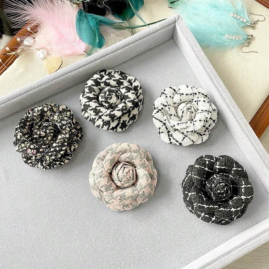 European And American Vintage Tweed Camellia Brooch Pin Woolen Flower Brooch