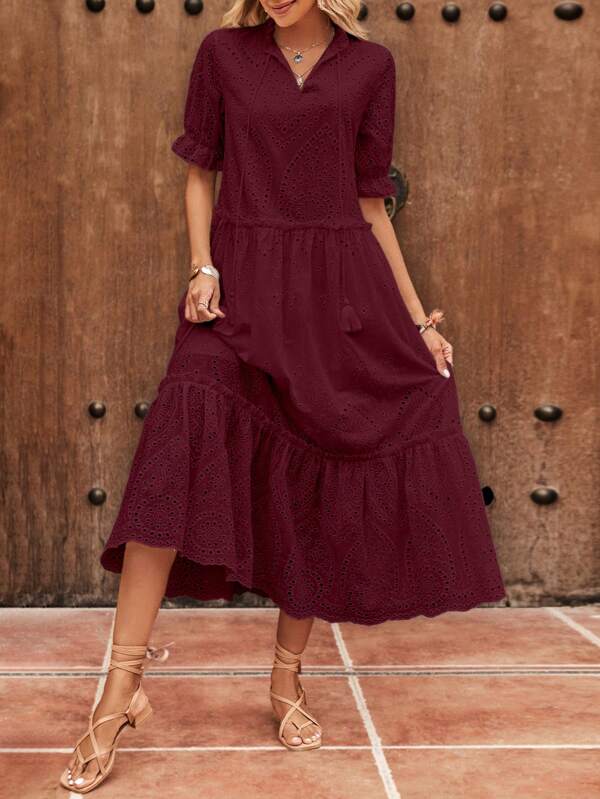 SHEIN LUNE Eyelet Embroidery Flounce Sleeve Ruffle Hem Smock Dress