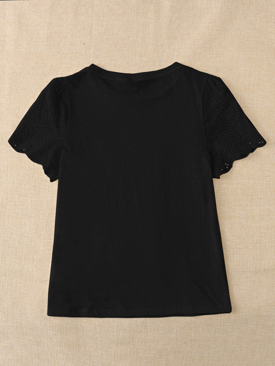 SHEIN LUNE Eyelet Embroidery Puff Sleeve Tee
