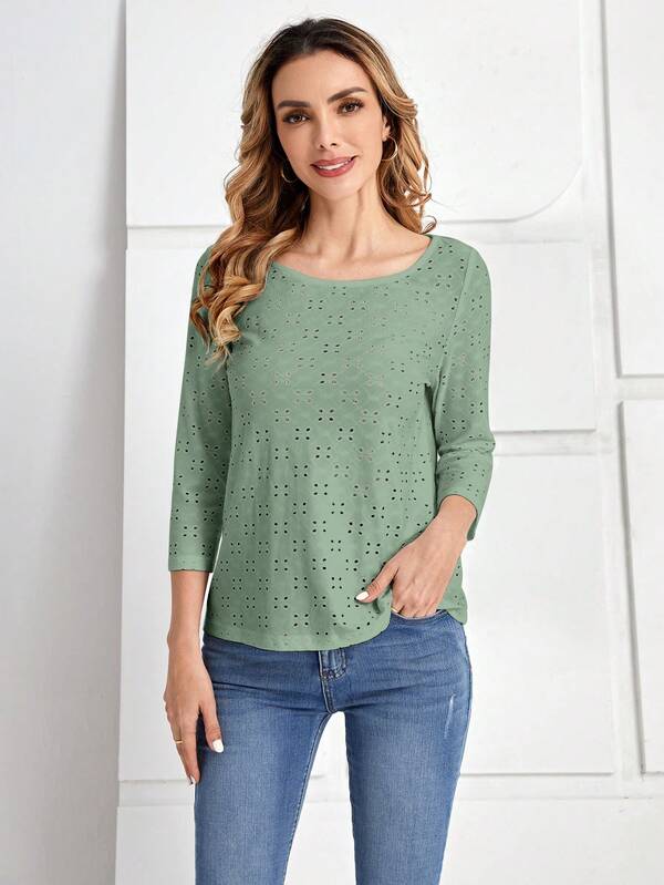 EMERY ROSE Eyelet Embroidery Tee