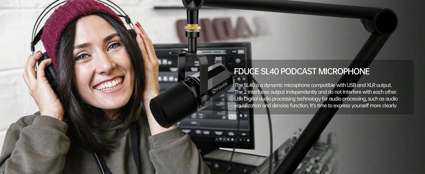 FDUCE SL40 USB/XLR Dynamic Microphone With Built-In Headset Output & Sound Insulation,For Podcasts,Games, Live Broadcast