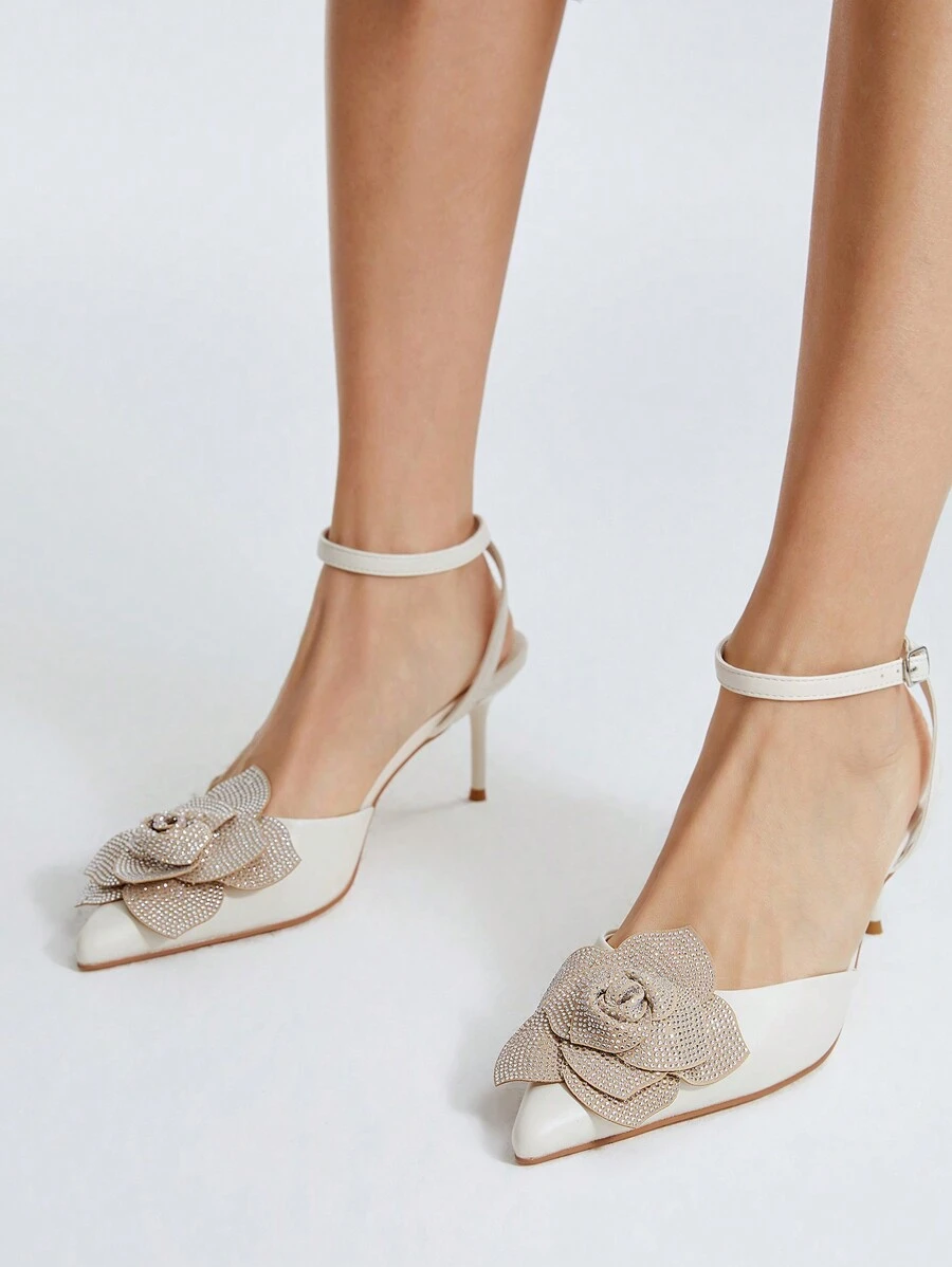 MOTF PREMIUM FLORAL DECOR STILETTO HEELED ANKLE STRAP SANDALS