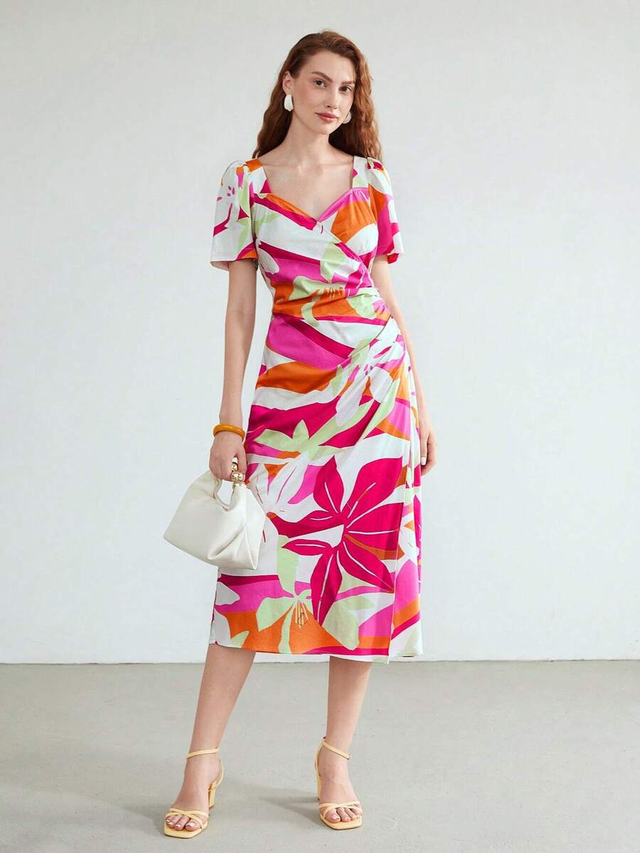 MOTF PREMIUM FLORAL MIDI DRESS WITHOUT CHAIN