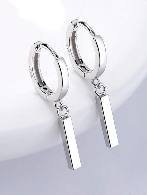 FOREVER QUEEN S925 Sterling Silver Bar Hoop Earrings Fashion Trendy Dangle Drop Earrings Jewelry Gifts For Women Girls Men