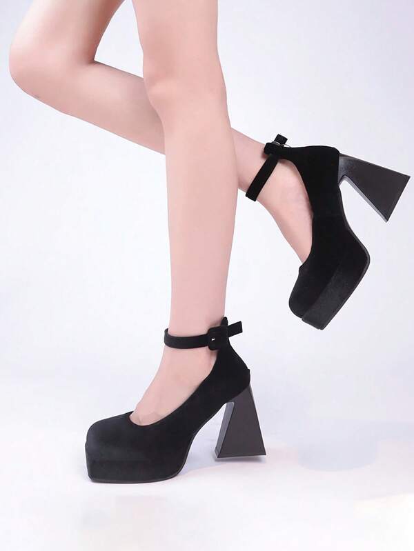 Fairy Style Women'S Shoes: Waterproof Platform Velvet Mary Jane Pumps With Thick Bottom And Chunky Heel For Spring & Autumn