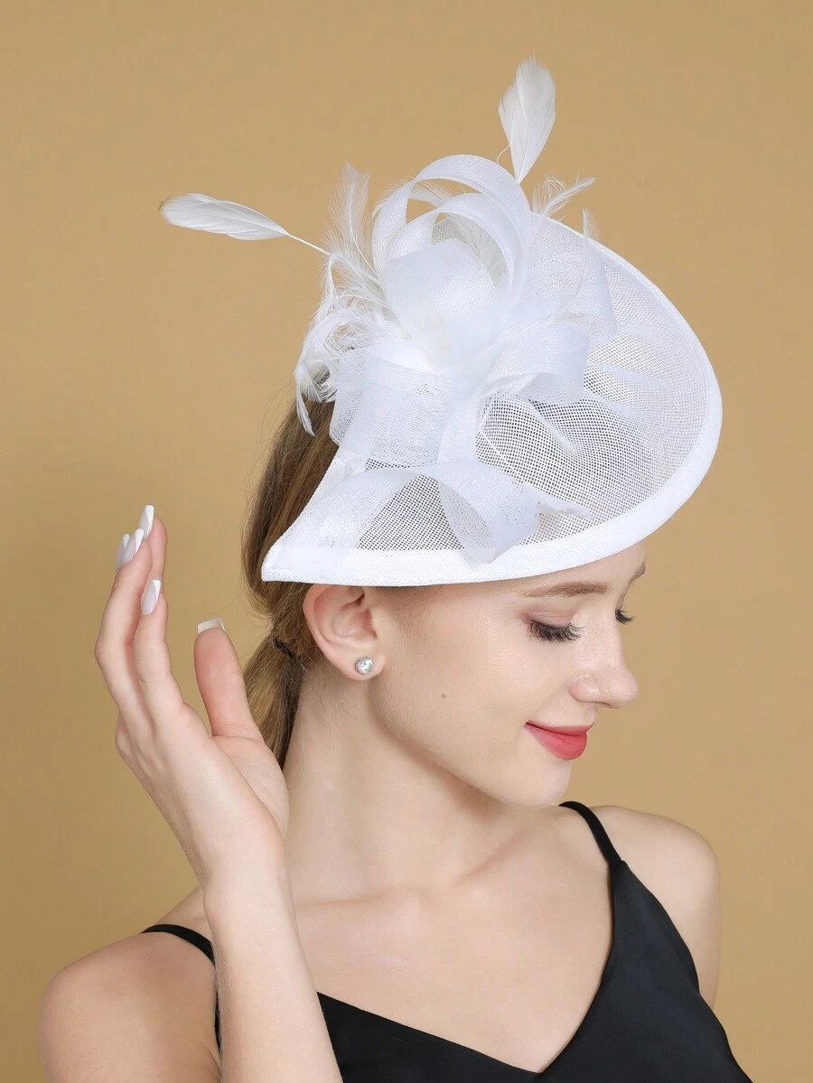 Fascinating Women'S Hat Tea Party Headband Kentucky Derby Wedding Cocktail Mesh Feather Hair Clip