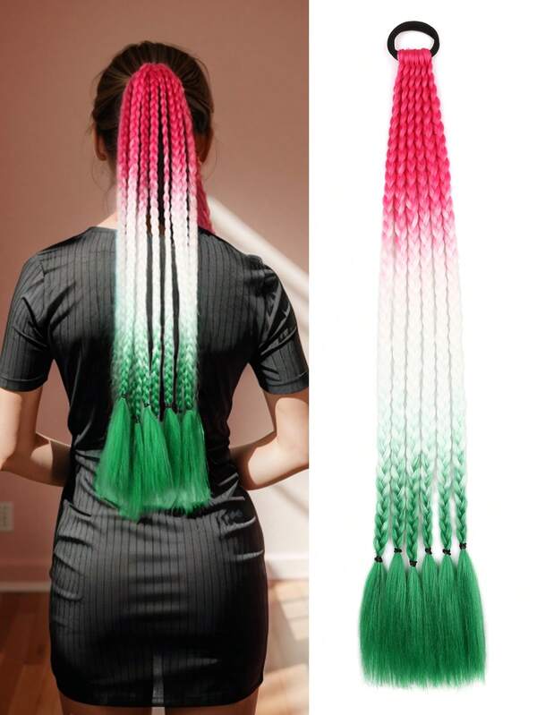 Fashion Extenions 6 Braids In One Piece Synthetic Heat Resistant Hair Extensions Black Red Purlle Brown Blue White Green Multi-Color Colorful Braiding Hair Jumbo Braids For Woven Hair Extension For Daily Holiday Cosplay Party And New Year Gifts Braided Fashion Braid Extenions Hair 1PCS