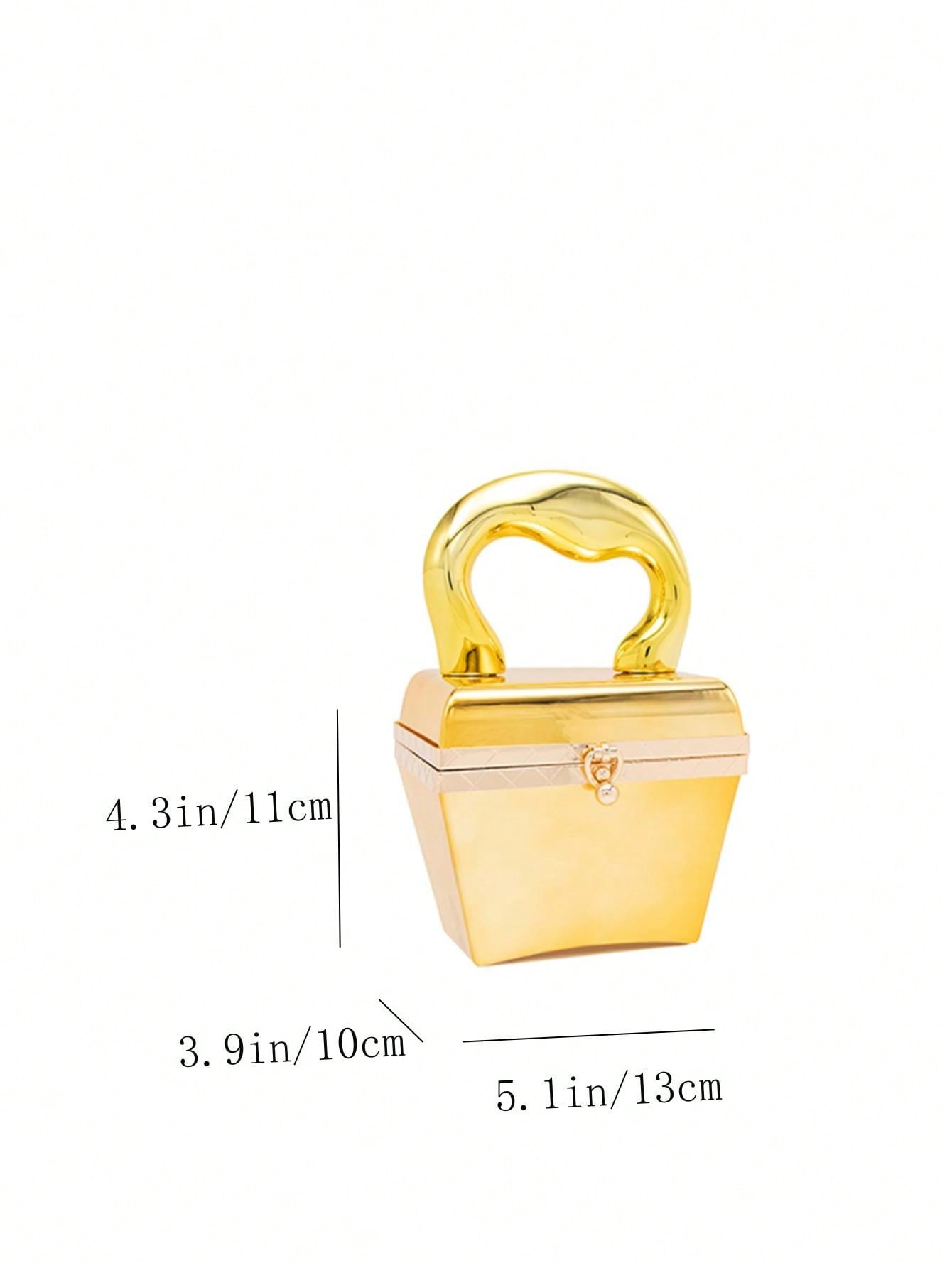 Fashion Metal Color Box Shaped Clutch Bag For Parties, With Unique Handle Design, Multiple Carrying Options Including Detachable Metal Shoulder Strap, Single Shoulder And Crossbody Bag